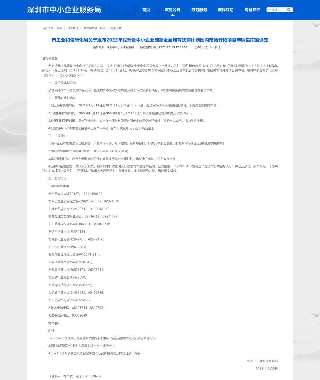 12月13日,深圳市工業(yè)和信息化局發(fā)布關(guān)于2022年民營(yíng)及中小企業(yè)創(chuàng)新發(fā)展培育扶持計(jì)劃國(guó)內(nèi)市場(chǎng)開(kāi)拓項(xiàng)目申請(qǐng)指南的通知,鼓勵(lì)支持深圳市民營(yíng)及中小企業(yè)為開(kāi)拓國(guó)內(nèi)外市場(chǎng)參加國(guó)內(nèi)重點(diǎn)經(jīng)貿(mào)科技類(lèi)展會(huì)項(xiàng)目,對(duì)其參展項(xiàng)目所發(fā)生的展位費(fèi)給予資助。